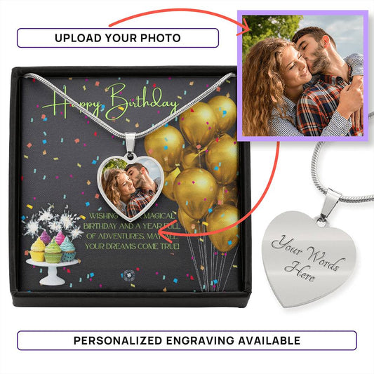 Custom Photo Upload Heart Pendant Necklace: Happy Birthday