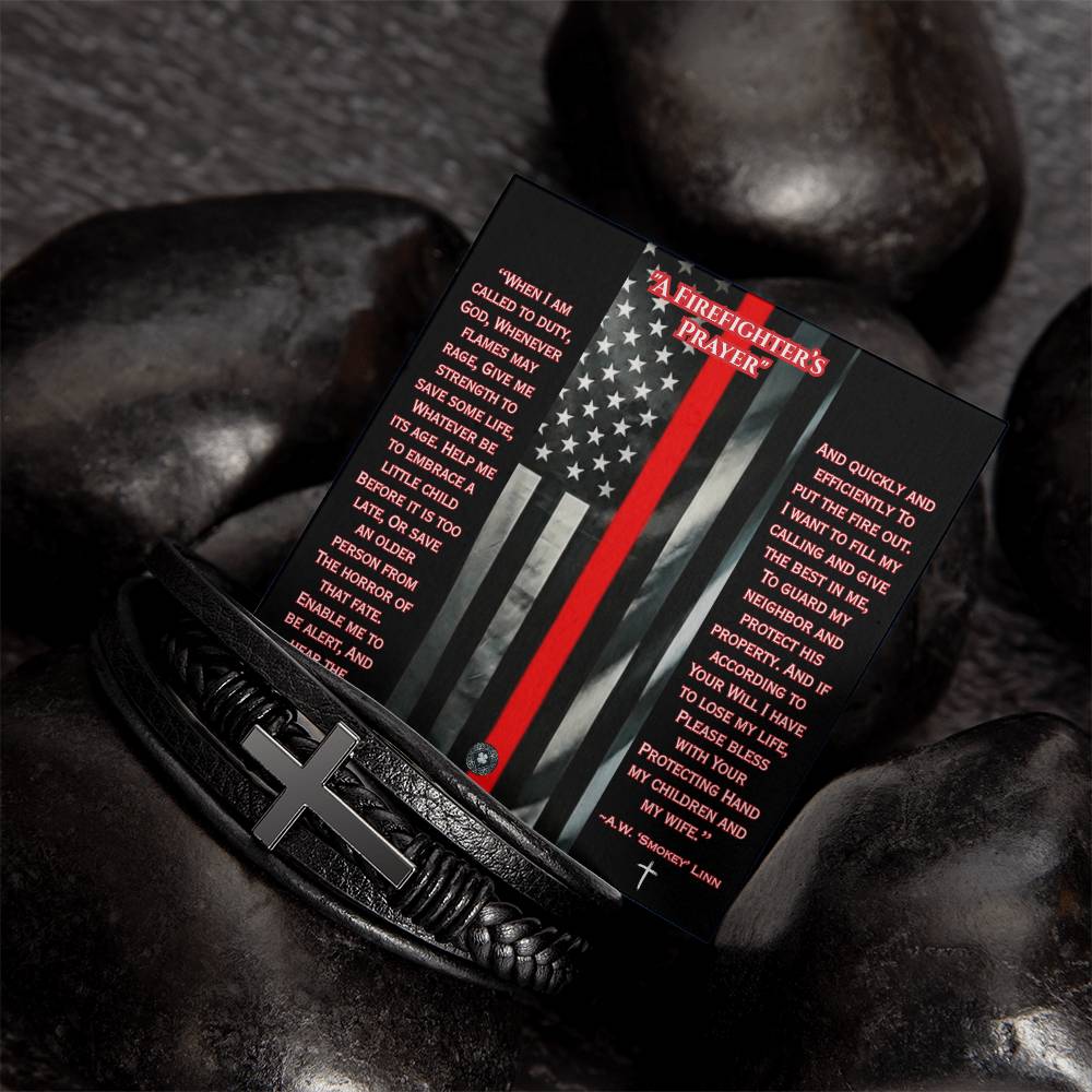 Engraved Artisan Cross Necklace with Cuban Link Chain: A Firefighter's Prayer