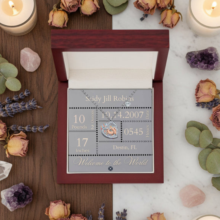 Each necklace in our collection arrives beautifully presented in a stunning mahogany-style wooden box featuring a plush flocked fleece lining, complete with a built-in LED light that illuminates the pendant in a captivating display that exudes sophistication and high-end craftsmanship. To protect and showcase your treasured piece, this exquisite box offers a luxurious unboxing experience that reflects the timeless beauty of the jewelry inside. This elevated presentation transforms your jewelry into a true centerpiece, making it the perfect gift or a treasured keepsake for yourself.
